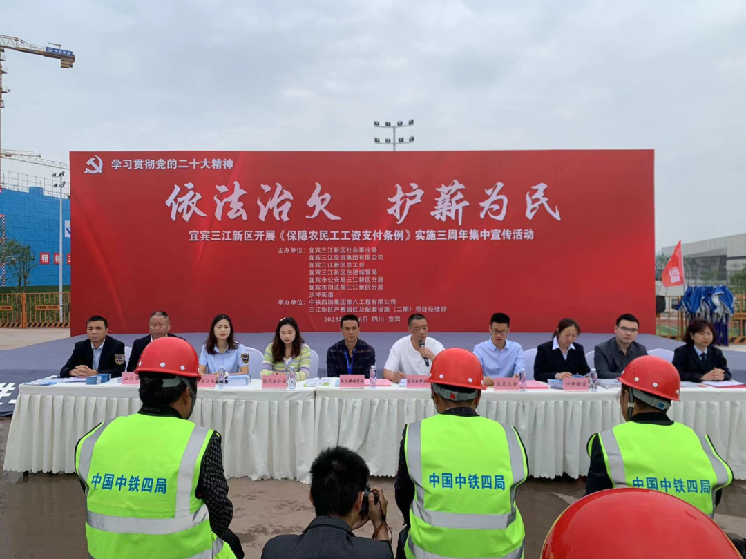 2023年4月26日,宜宾三江新区开展“依法治欠,护薪为民”暨《保障农民工工资支付条例》(以下简称“《条例》”)实施三周年集中宣传活动,特邀请明炬宜宾分所陈泽雷律师为三江新区产教园区及配套设施(二期)项目部的农民工进行《条例》的解读宣讲。