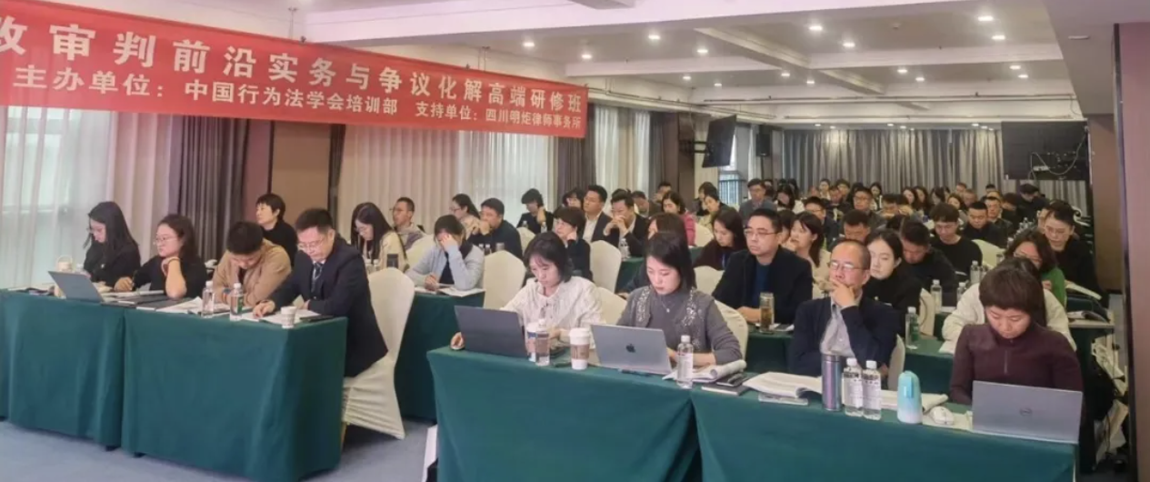 2025年10月24日至26日,由中国行为法学会培训部主办、四川明炬律师事务所协办的“行政审判前沿实务与争议化解高端研修班”在成都成功举行。明炬总分所联动,共13名律师积极参与其中。本次研修班聚焦行政审判领域的热点难点问题,吸引全国范围内的律师、政府领导干部及工作人员、企业法务等专业群体积极参与,搭建起深度研修与高效交流的专业平台。