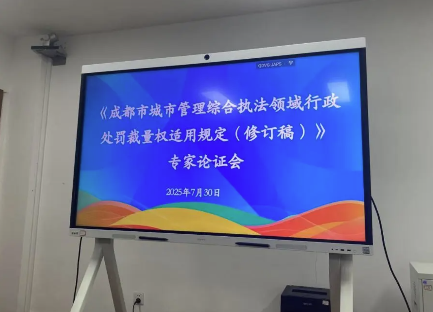 2025年7月30日上午,成都市城市管理行政执法总队组织召开《成都市城市管理综合执法领域行政处罚裁量权适用规定(修订稿)》专家论证暨社会稳定风险评估会。四川明炬律师事务所合伙人、政府与行政法专业委员会副主任龙冠中作为四川省住房城乡建设厅专家库专家受邀参会。