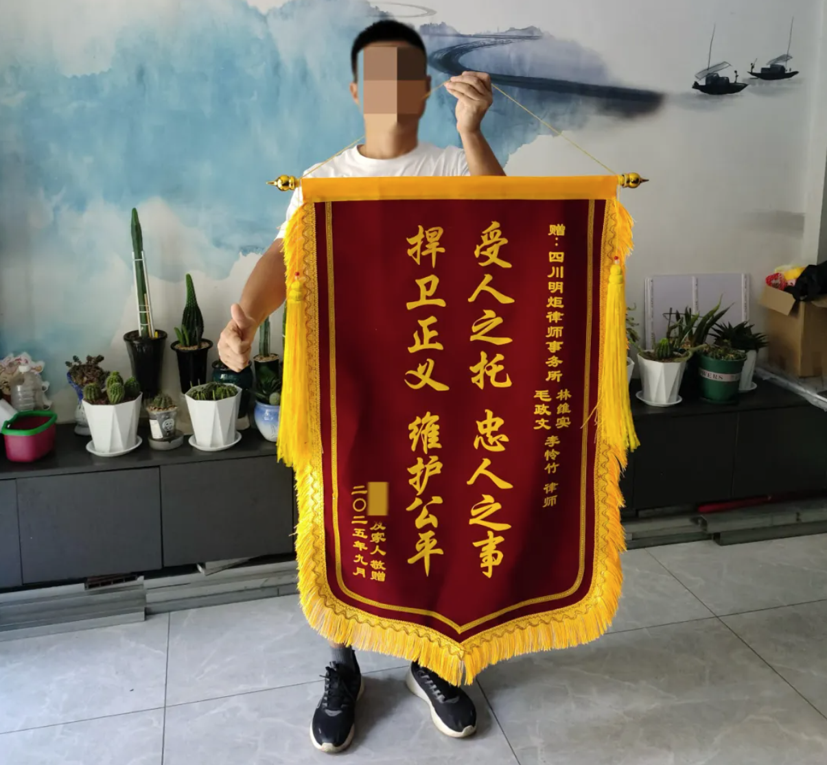 一份特殊的“礼物”——蒲晗、黄伟律师获赠锦旗背后的信任与担当